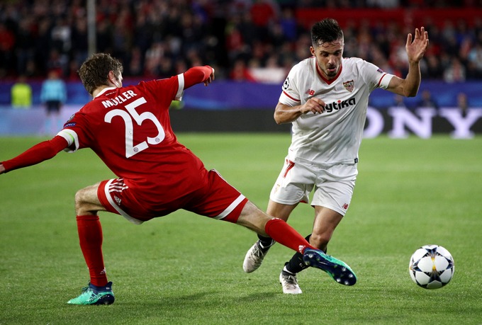 Getty ImagesВ первом матче 1/4 финала Лиги чемпионов мюнхенская «Бавария» на выезде обыграла испанскую «Севилью» со счетом 2:1.