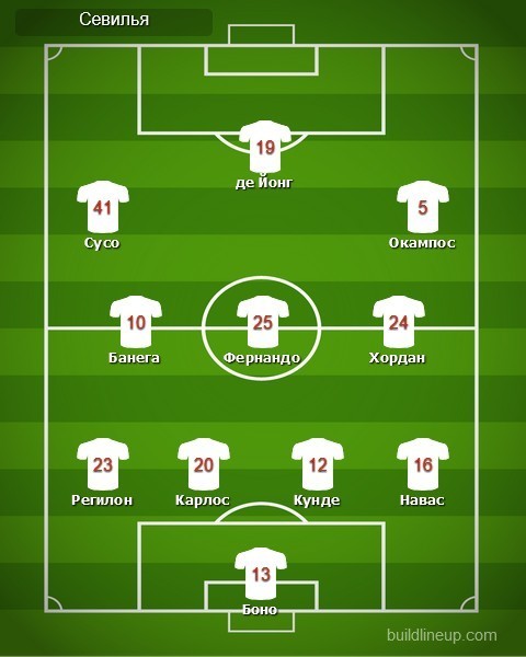«Севилья»: Бону, Серхио Регилон, Диего Карлос (Неманья Гудель, 85), Жюль Кунде, Хесус Навас, Эвер Банега, Фернандо, Хоан Хордан, Сусо (Франко Васкес, 78), Лукас Окампос (Мунир Эль-Хаддади, 70), Люк де Йонг (Юссеф Эн-Несири, 85)